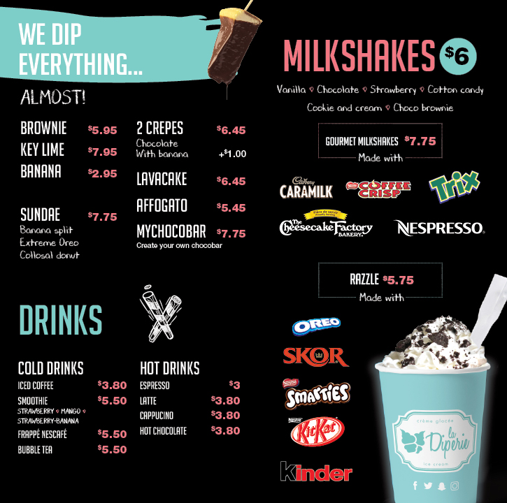 But La Diperie is not just about ice cream! Treat yourself to a slice of their Lava Cake, artfully presented with a warm dark chocolate center and a generous scoop of ice cream for CA$6.45. Or perhaps you’d prefer the delightful Affogato, where rich Nespresso coffee meets creamy vanilla soft serve, topped with Skor bits, all for just CA$5.45. Each dessert showcases finesse, turning a simple sweet craving into a mouth-watering adventure.
